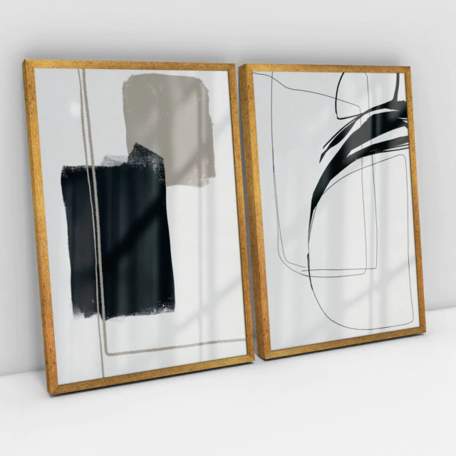 Quadro Decorativo Abstrato Always Remember Me + Black Scratch - Karine Tonial - Kit com 2 Quadros