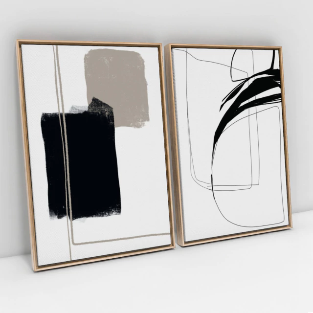 2. Moldura sem vidro: Trata-se do mesmo tecido canvas esticado no chassi, porém com acréscimo da moldura estilo canaleta (ou flutuante). Estas molduras possuem perfil de 4 cm de profundidade e são fabricadas em madeira de reflorestamento revestida.