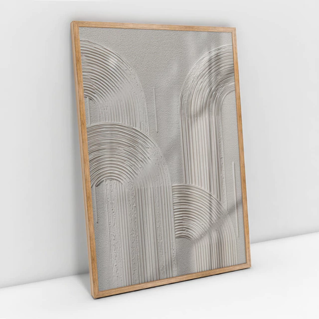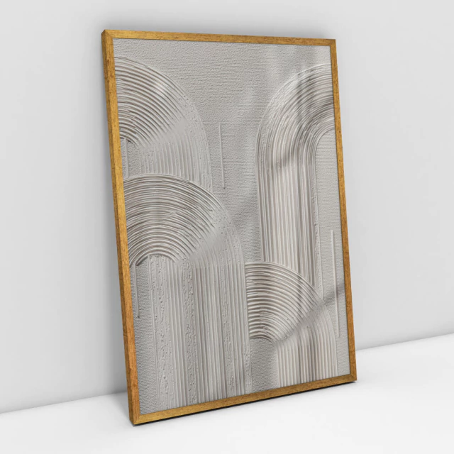 2. Moldura sem vidro: Trata-se do mesmo tecido canvas esticado no chassi, porém com acréscimo da moldura estilo canaleta (ou flutuante). Estas molduras possuem perfil de 4 cm de profundidade e são fabricadas em madeira de reflorestamento revestida.