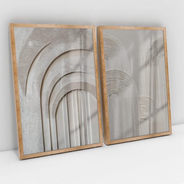Quadro Decorativo Abstrato Arcos Beges Kit com 2 Quadros