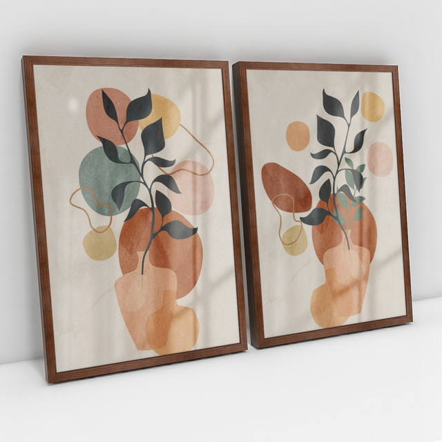 Quadro Decorativo Abstrato Botânico Vasos com Plantas - 12A+12B - Uillian Rius - Kit com 2 Quadros