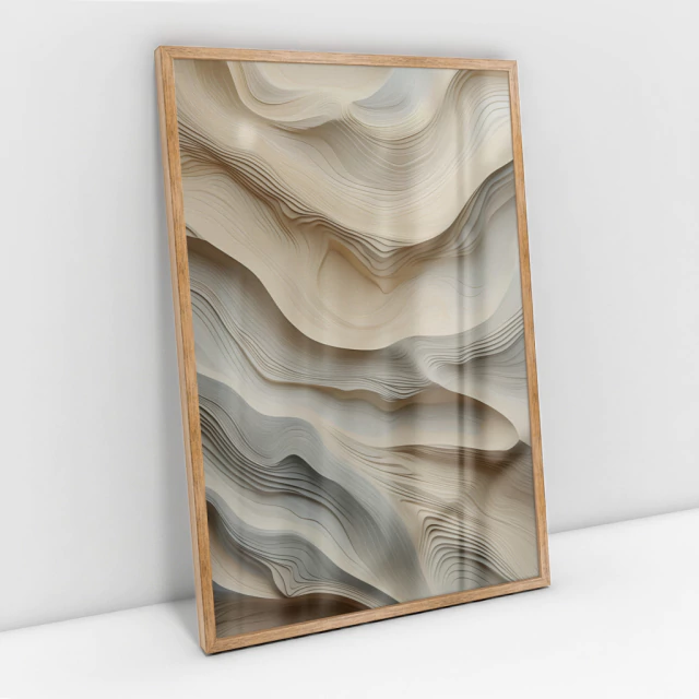 2. Moldura sem vidro: Trata-se do mesmo tecido canvas esticado no chassi, porém com acréscimo da moldura estilo canaleta (ou flutuante). Estas molduras possuem perfil de 4 cm de profundidade e são fabricadas em madeira de reflorestamento revestida.