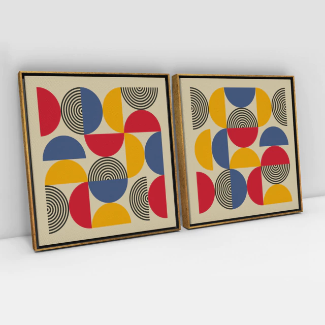 Quadro Decorativo Abstrato Geométrico Bauhaus Design Kit com 2 Quadros