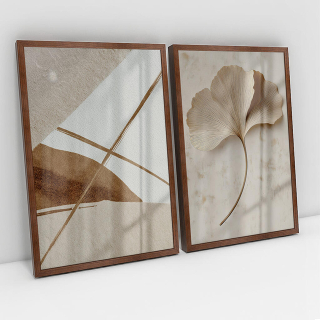 Quadro Decorativo Abstrato Ginkgo Leaf Kit com 2 Quadros