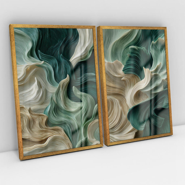 Quadro Decorativo Abstrato High Grass Efeito 3D Kit com 2 Quadros