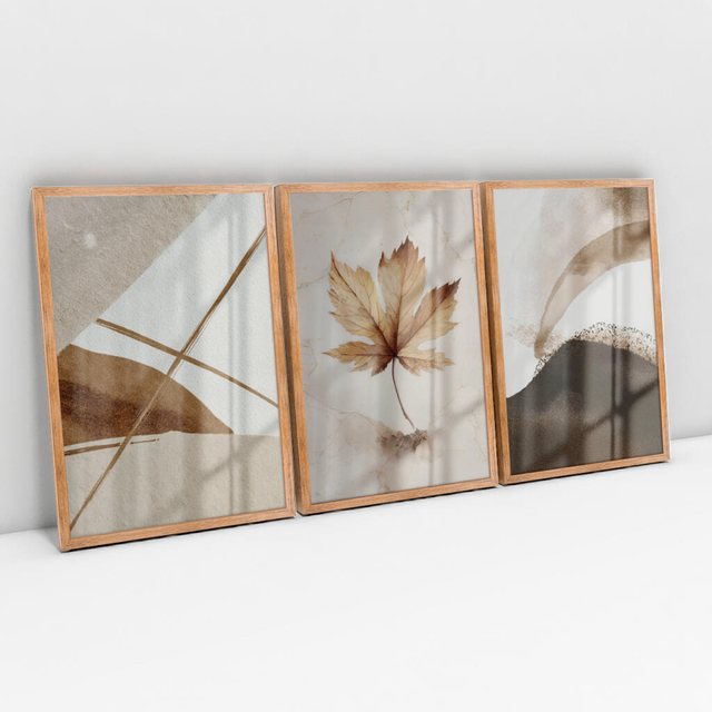 Quadro Decorativo Abstrato Maple Leaf Kit com 3 Quadros