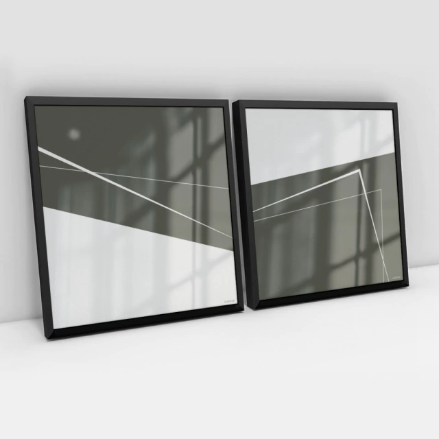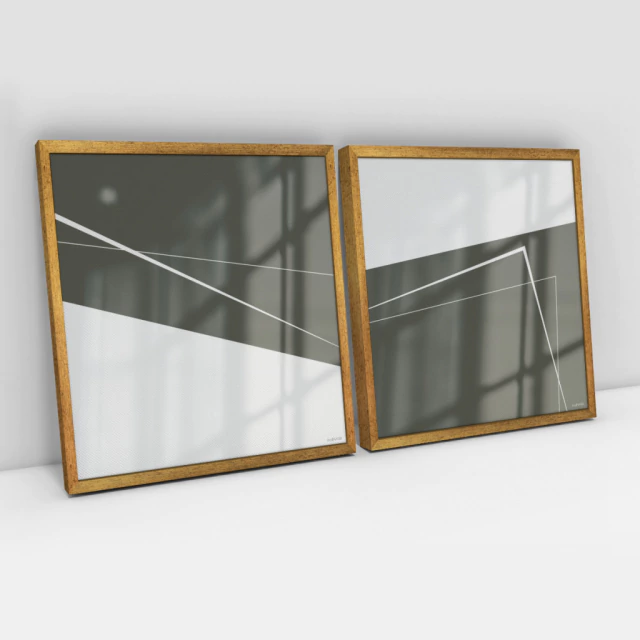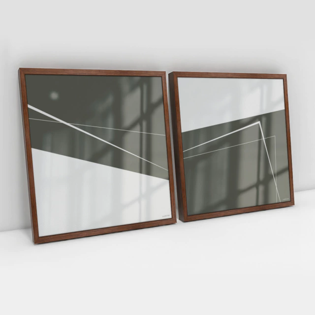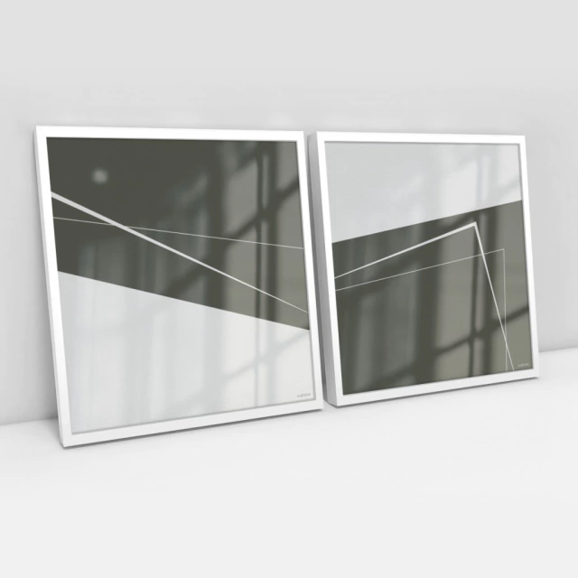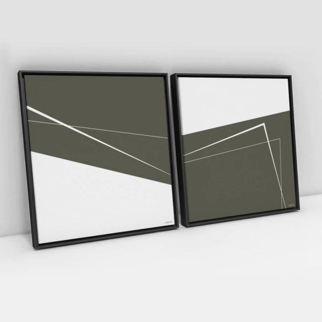 Quadro Decorativo Abstrato Minimal Oliva Diagonal - Ana Ifanger - Kit com 2 Quadros