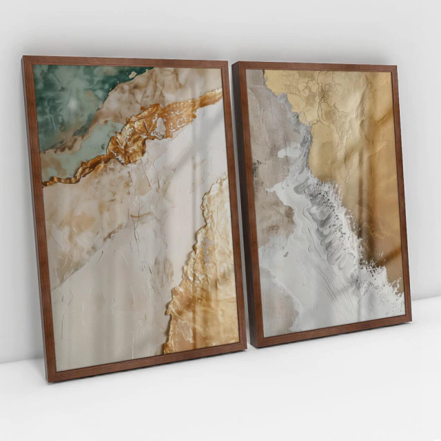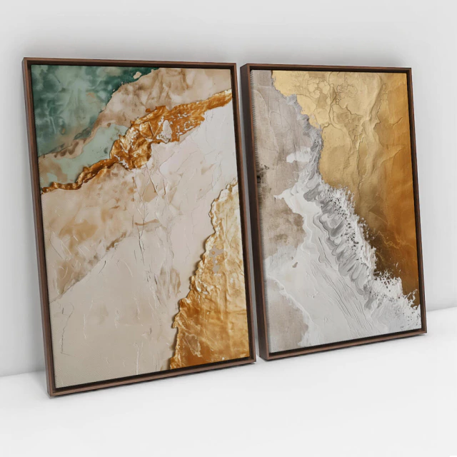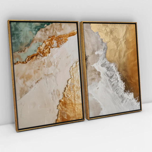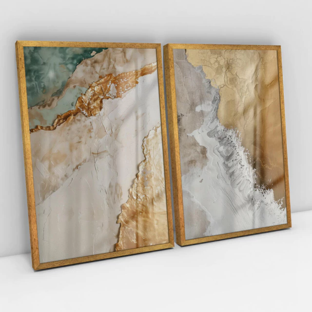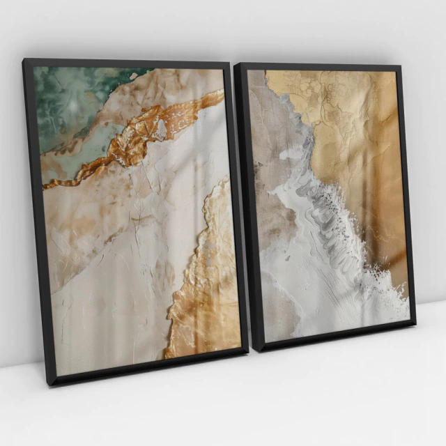 Quadro Decorativo Abstrato Ouro e Areia II Kit com 2 Quadros