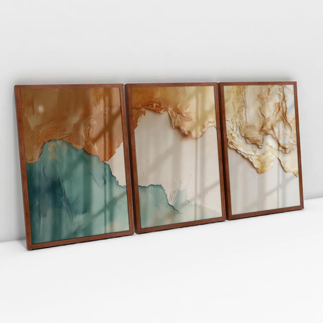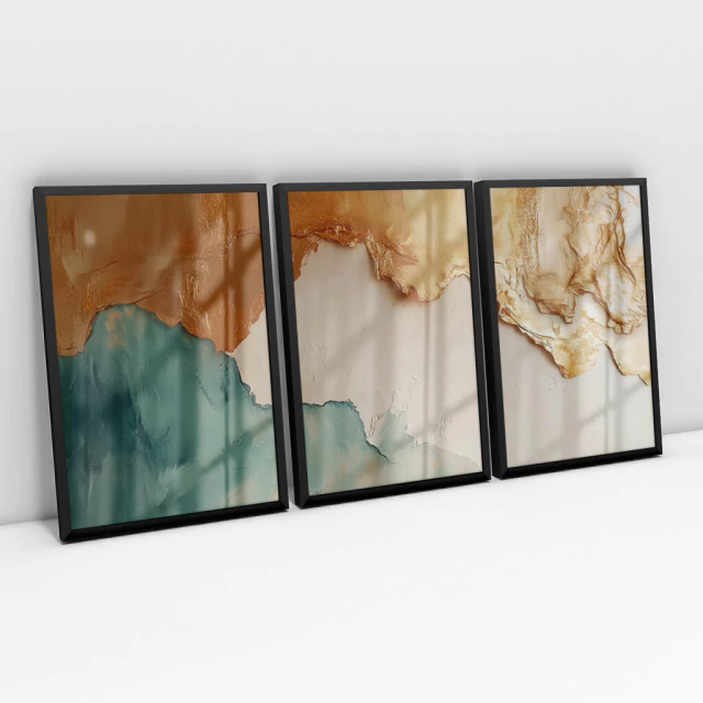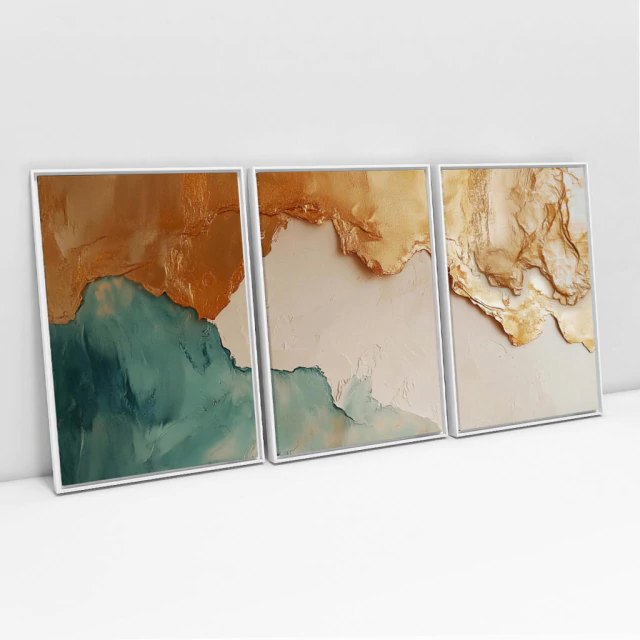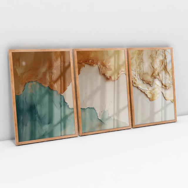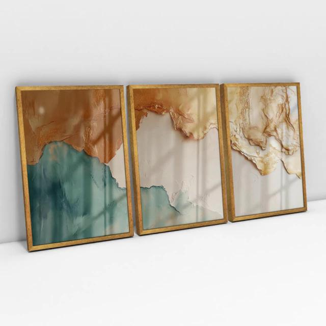 Quadro Decorativo Abstrato Ouro e Areia II - Kit com 3 Quadros