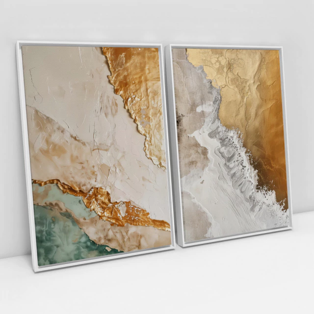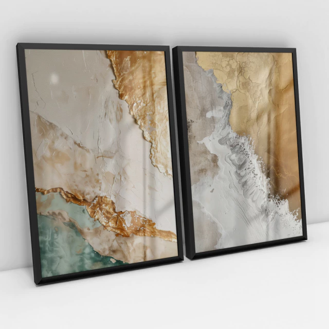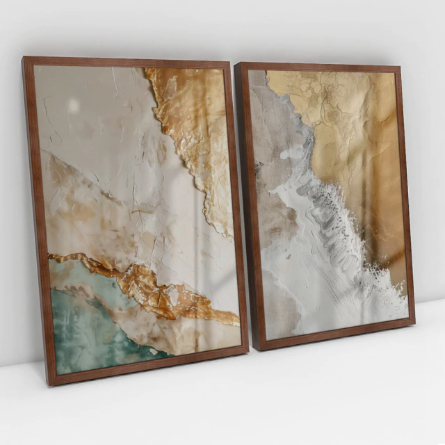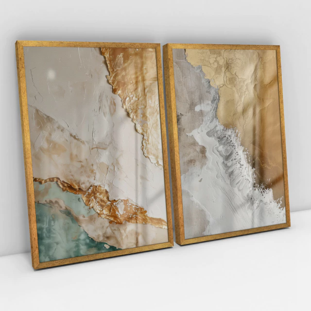 Quadro Decorativo Abstrato Ouro e Areia Kit com 2 Quadros