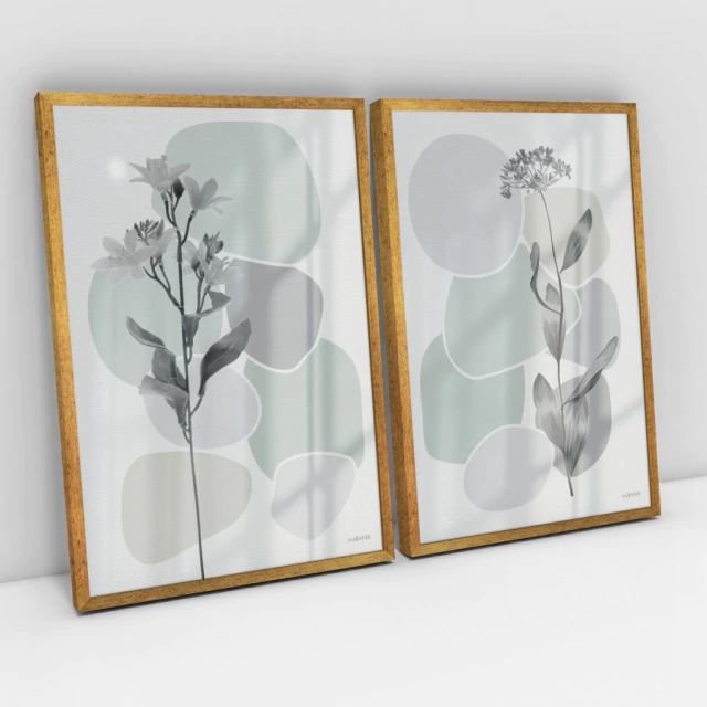 Quadro Decorativo Abstrato Romantic Gray - Ana Ifanger - Kit com 2 Quadros