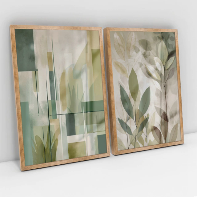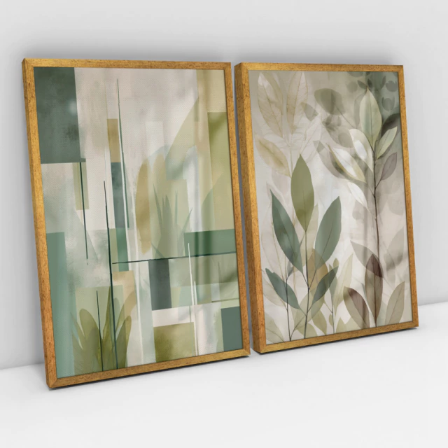 Quadro Decorativo Abstrato Soft Verde Kit com 2 Quadros