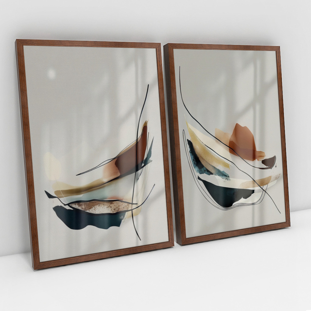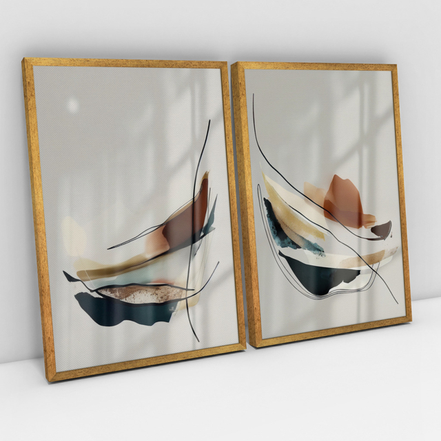 Quadro Decorativo Abstrato Tons de Chá Kit com 2 Quadros
