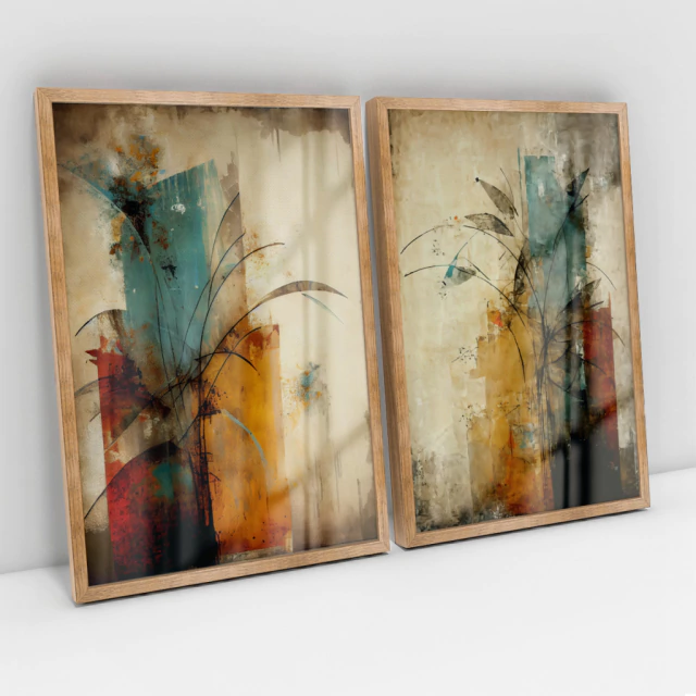 Quadro Decorativo Abstrato Wabi-sabi Art Kit com 2 Quadros