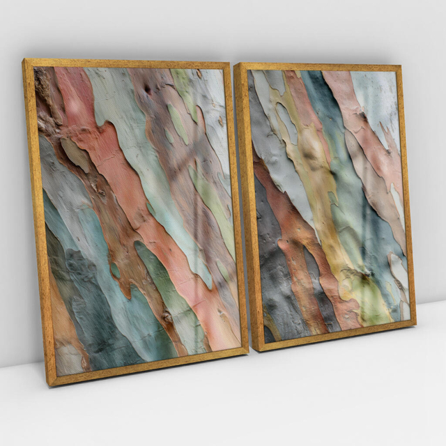 Quadro Decorativo Cascas de Eucalipto Arco-Íris Kit com 2 Quadros