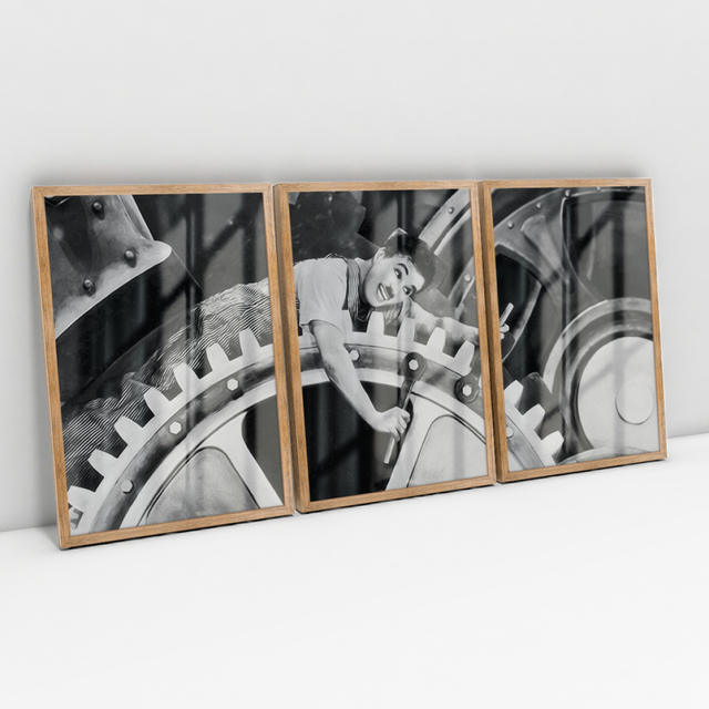 Quadro Decorativo Charlie Chaplin Tempos Modernos Kit com 3 Quadros