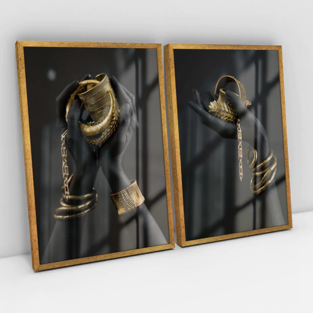 Quadro Decorativo Fashion Hands in Black and Gold - Kit com 2 Quadros