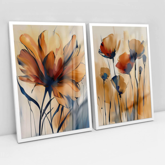 Quadro Decorativo Flowers Oil Paint - Uillian Rius - Kit com 2 Quadros