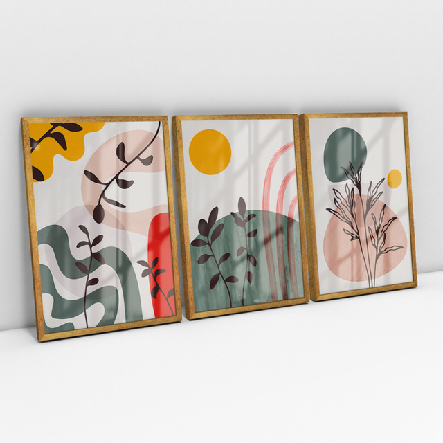 Quadro Decorativo Folhagem Abstrata Kit com 3 Quadros