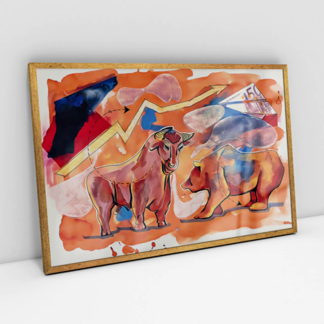 Quadro Decorativo Mercado de Ações O Touro e o Urso