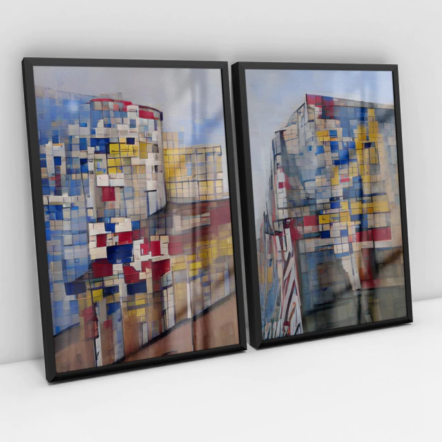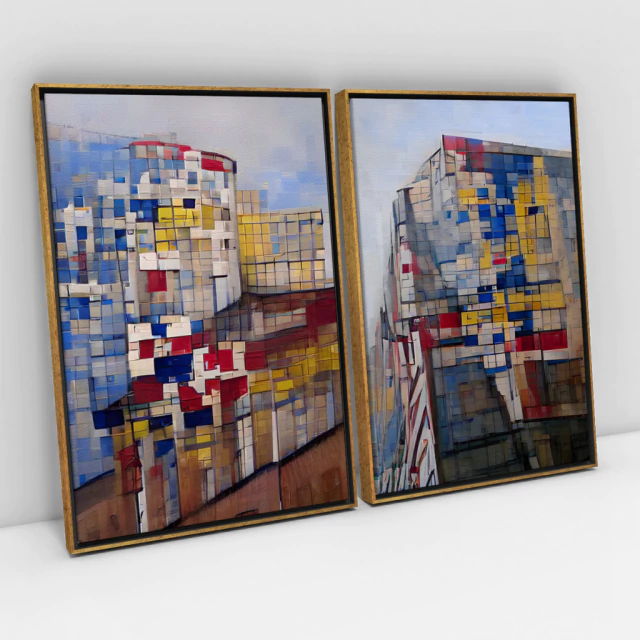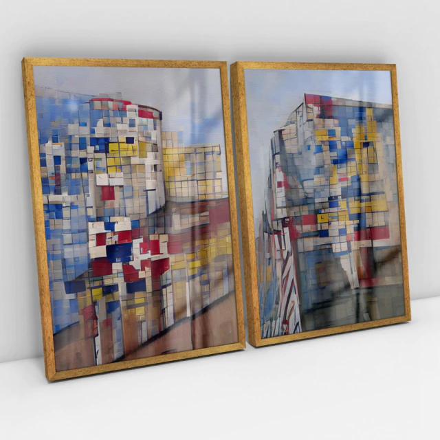 Quadro Decorativo Mondri 1 e 3 - Rafael Spif - Kit com 2 Quadros