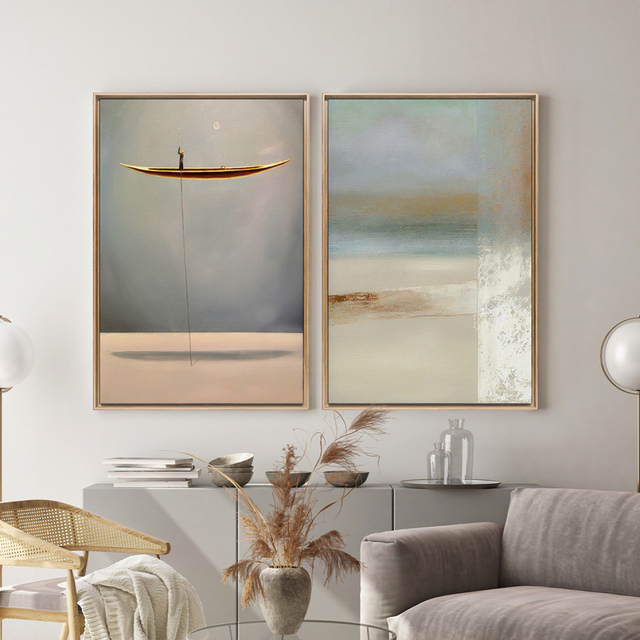 2. Moldura sem vidro: Trata-se do mesmo tecido canvas esticado no chassi, porém com acréscimo da moldura estilo canaleta (ou flutuante). Estas molduras possuem perfil de 4 cm de profundidade e são fabricadas em madeira de reflorestamento revestida.