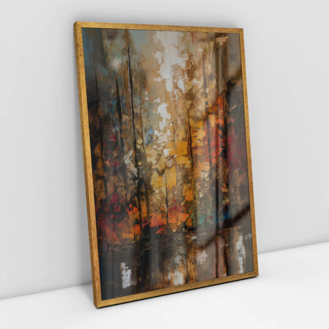 3. Moldura com vidro: Assim como nas opções mencionadas anteriormente, se trata do mesmo tecido canvas esticado no chassi, porém com acréscimo da moldura caixa (feita com madeira de reflorestamento). A moldura caixa possui 3 cm de perfil e permite a inserção do vidro.