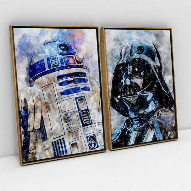 Quadro Decorativo Star Wars R2D2 e Darth Vader Kit com 2 Quadros